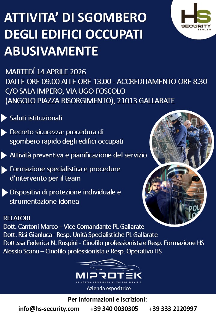 MEDA 22 APRILE Giornata di formazione gratuita per le forze di polizia